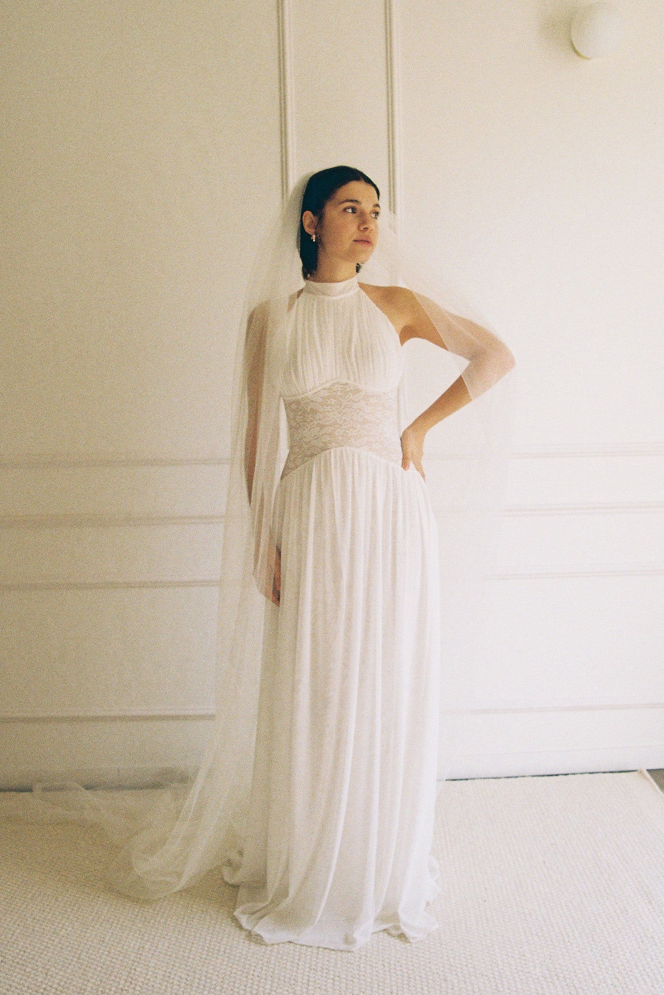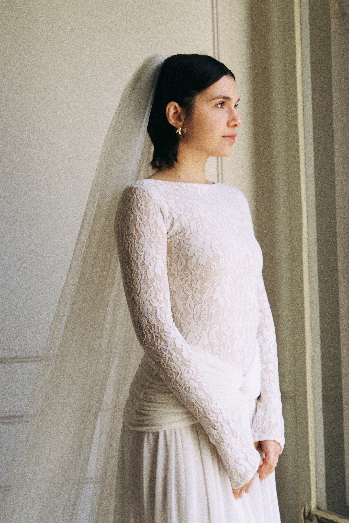 Capture that effortless bridal grace with this feather-light tulle veil. Its airy drape works seamlessly with any wedding gown, whether you're going romantic, minimalist, or bold. A delicate layer that enhances without overwhelming your special day.