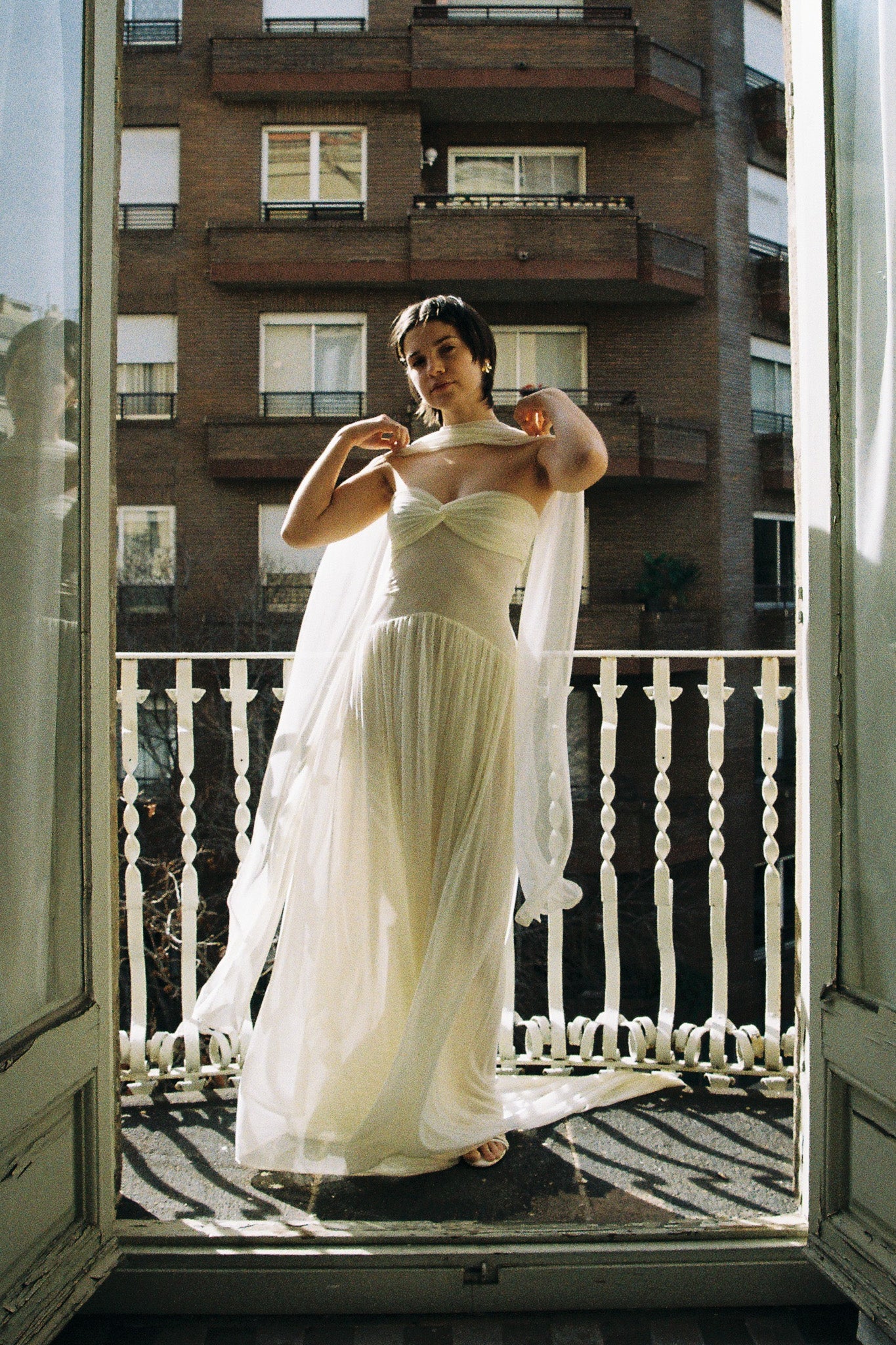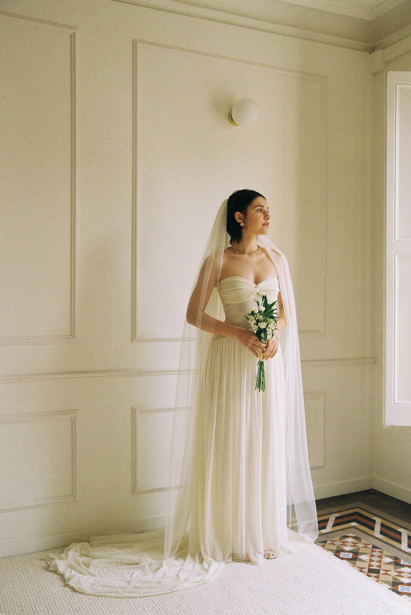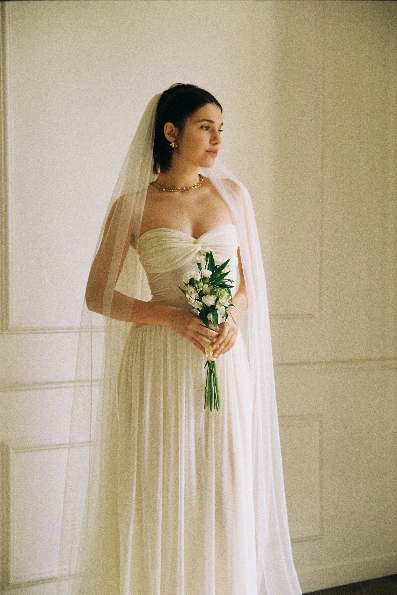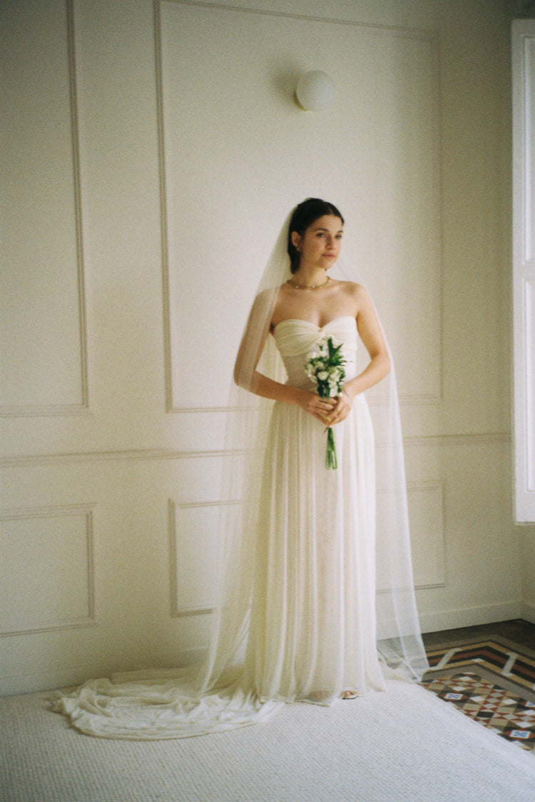 The veil is purchased separately.