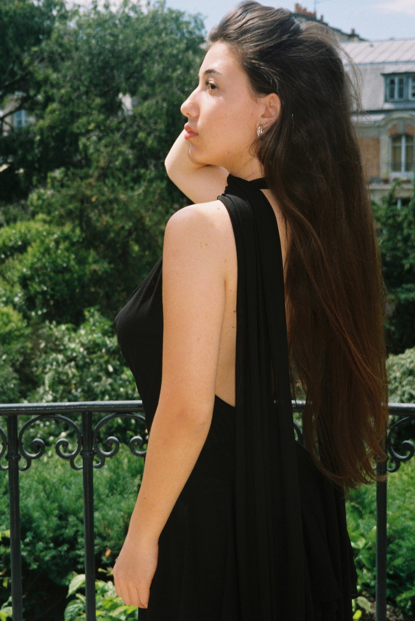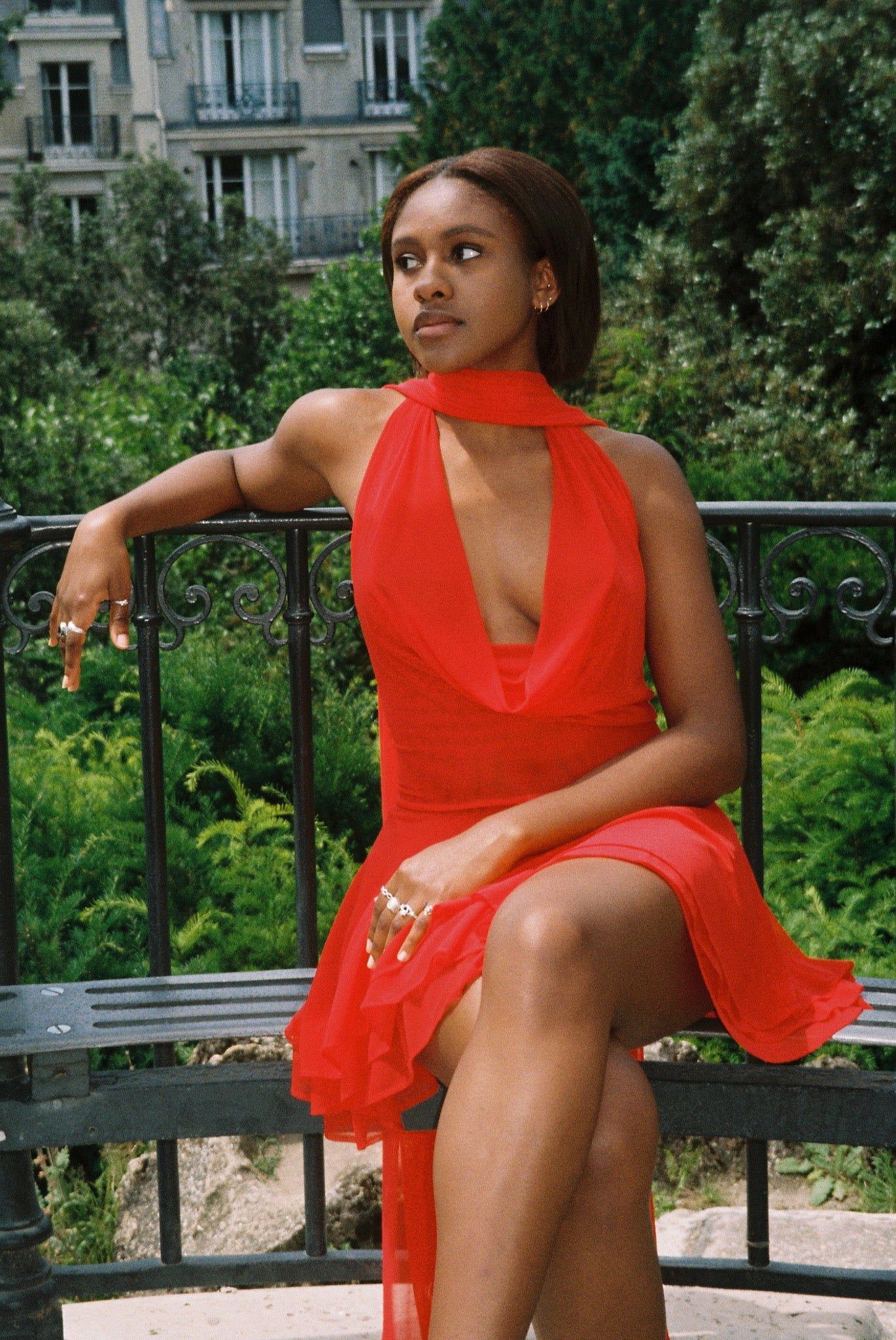 Introducing the perfect summer dress: The Freya Dress. This stunning dress features an elegant asymmetrical hem and a triple-layered skirt, creating a flowy, lightweight, and stylish feel. The dress comes with an accessory belt that can also be worn as a scarf, giving you endless styling options.