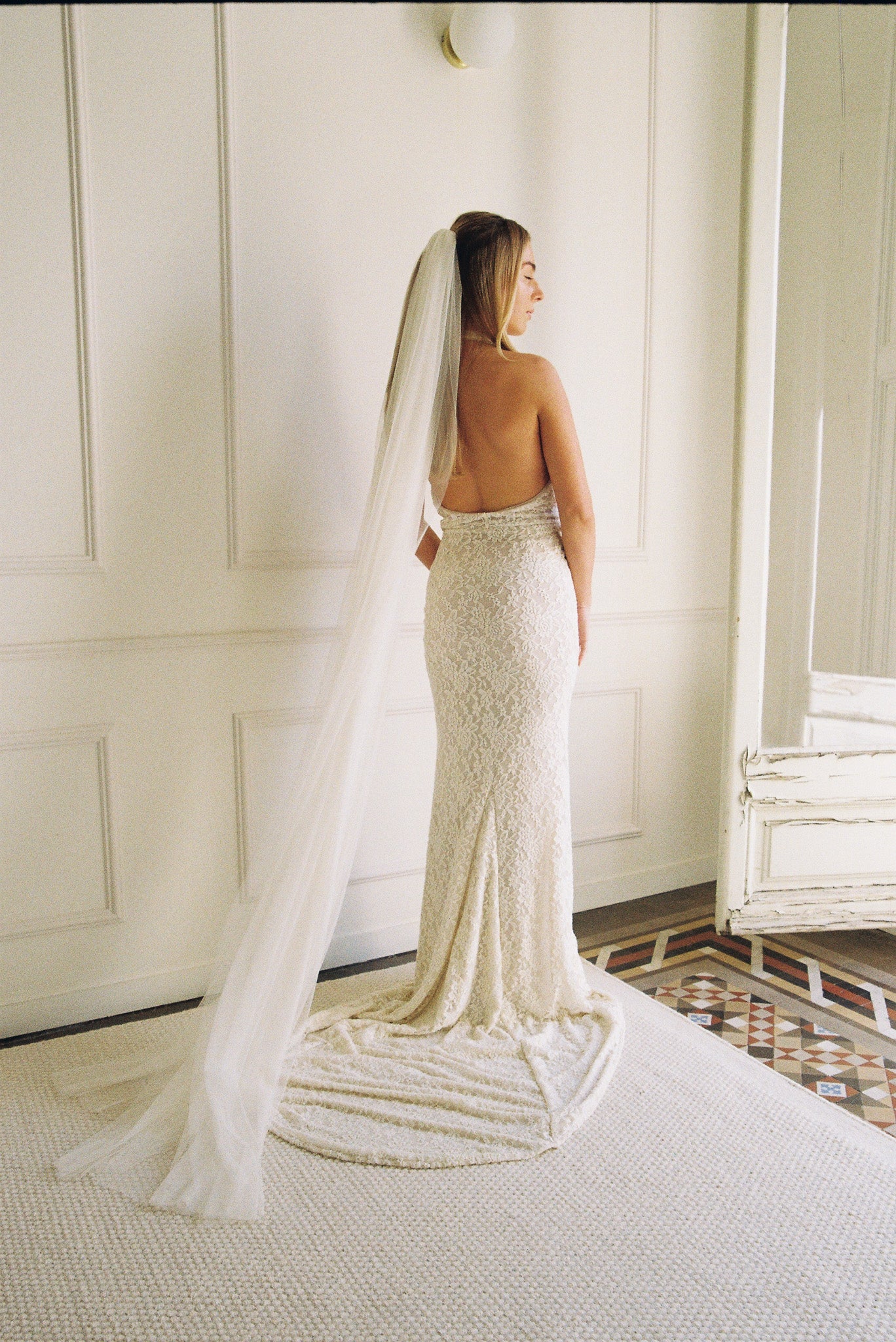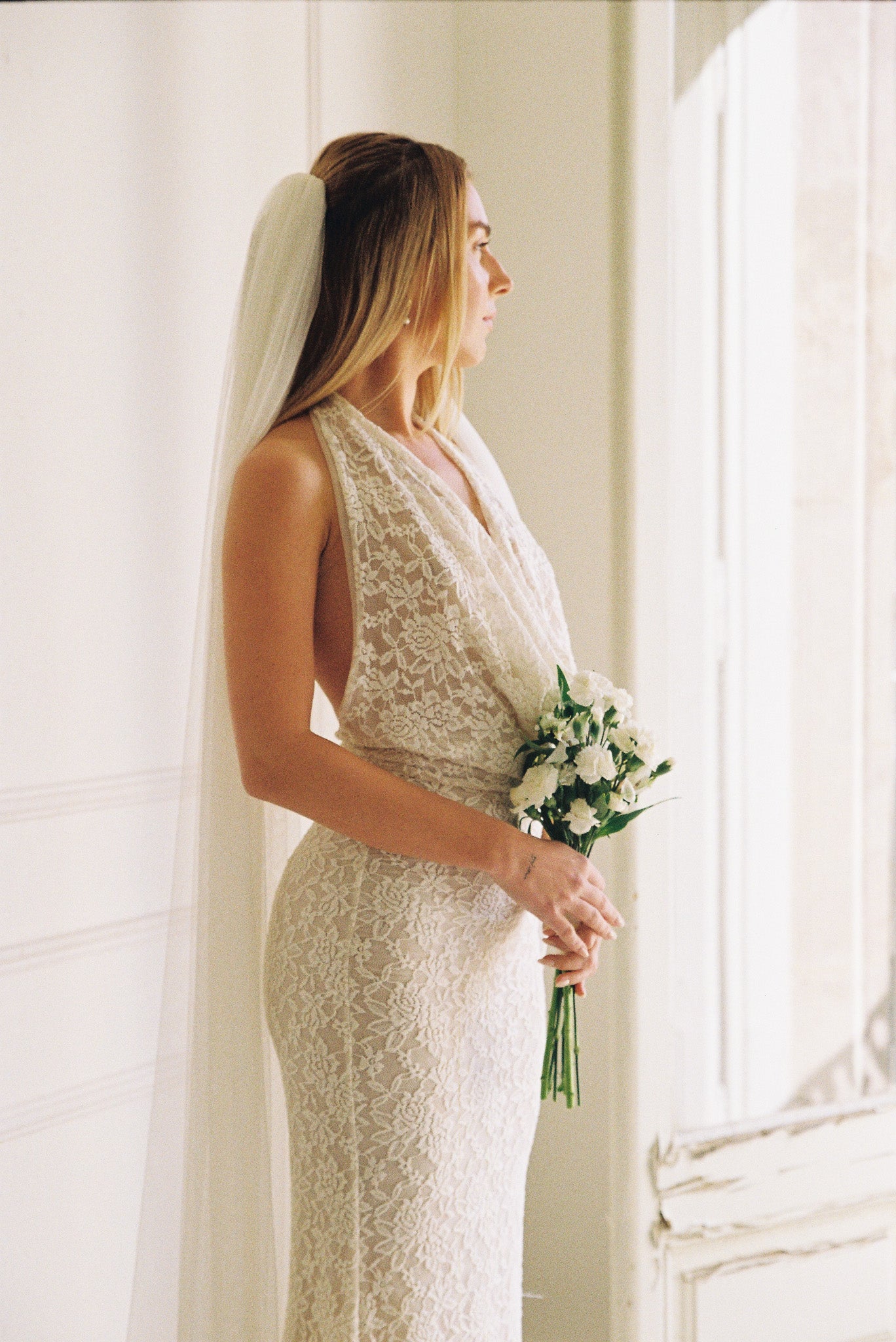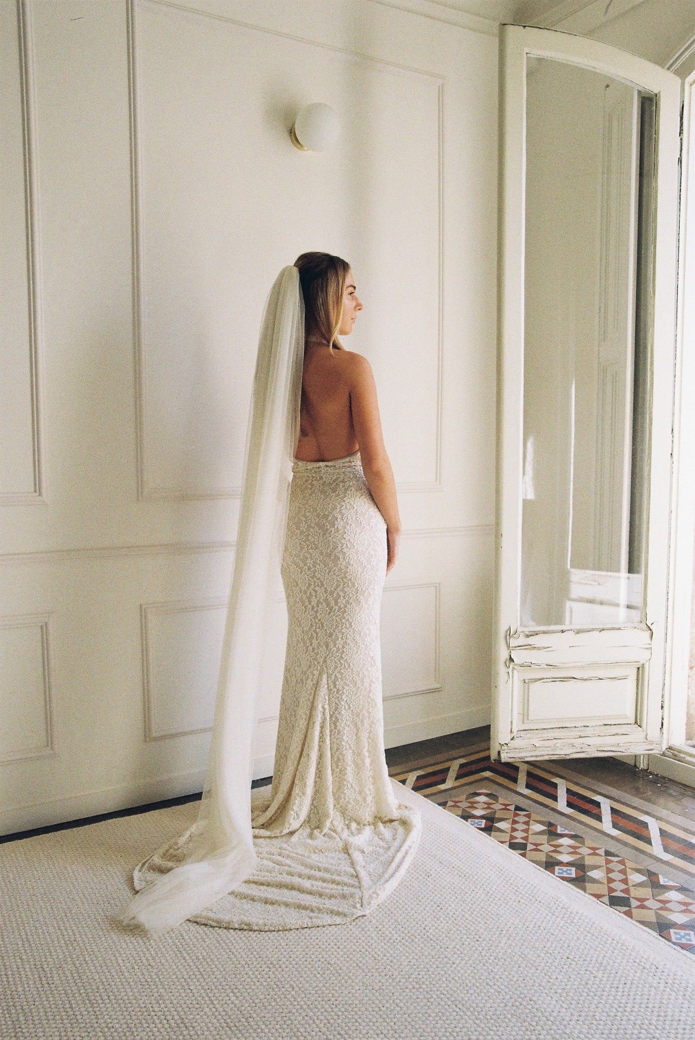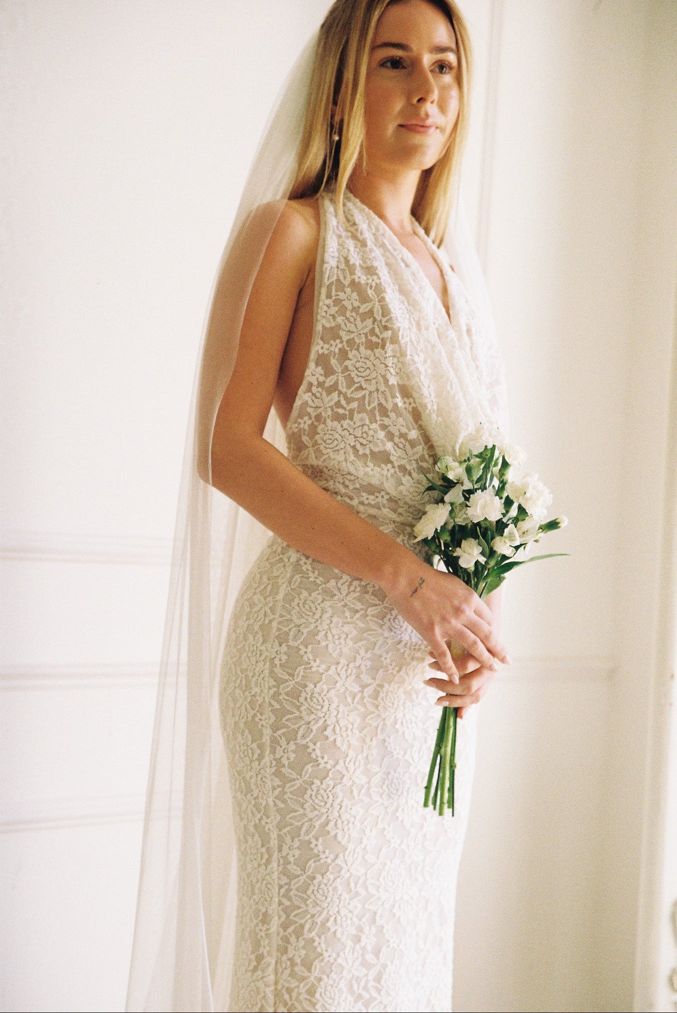 The Jessica Dress is a timeless bridal gown that celebrates understated elegance. Crafted for the modern bride who values simplicity without sacrificing sophistication, this dress features clean lines and a graceful silhouette. The train adds a touch of grandeur. Perfect for brides seeking a refined, effortless look that photographs beautifully and feels as wonderful as it looks.