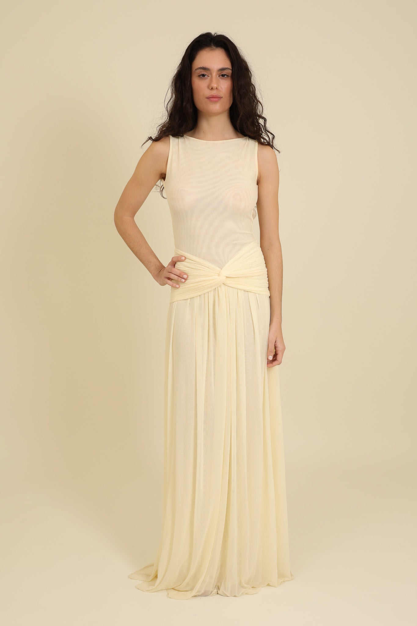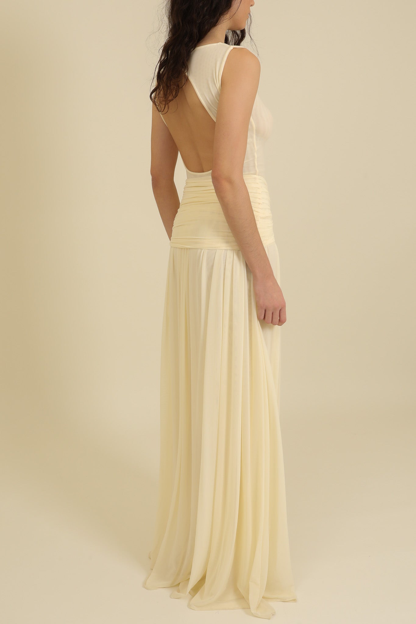 This maxi dress is truly a work of art! The fitted silhouette, paired with a subtle open back and flowing skirt, creates a stunning, flattering shape. Wear it with the accessory waistband for added detail or on its own for a sleek look. Perfectly tailored, it embraces your curves, delivering a chic and beautiful silhouette.