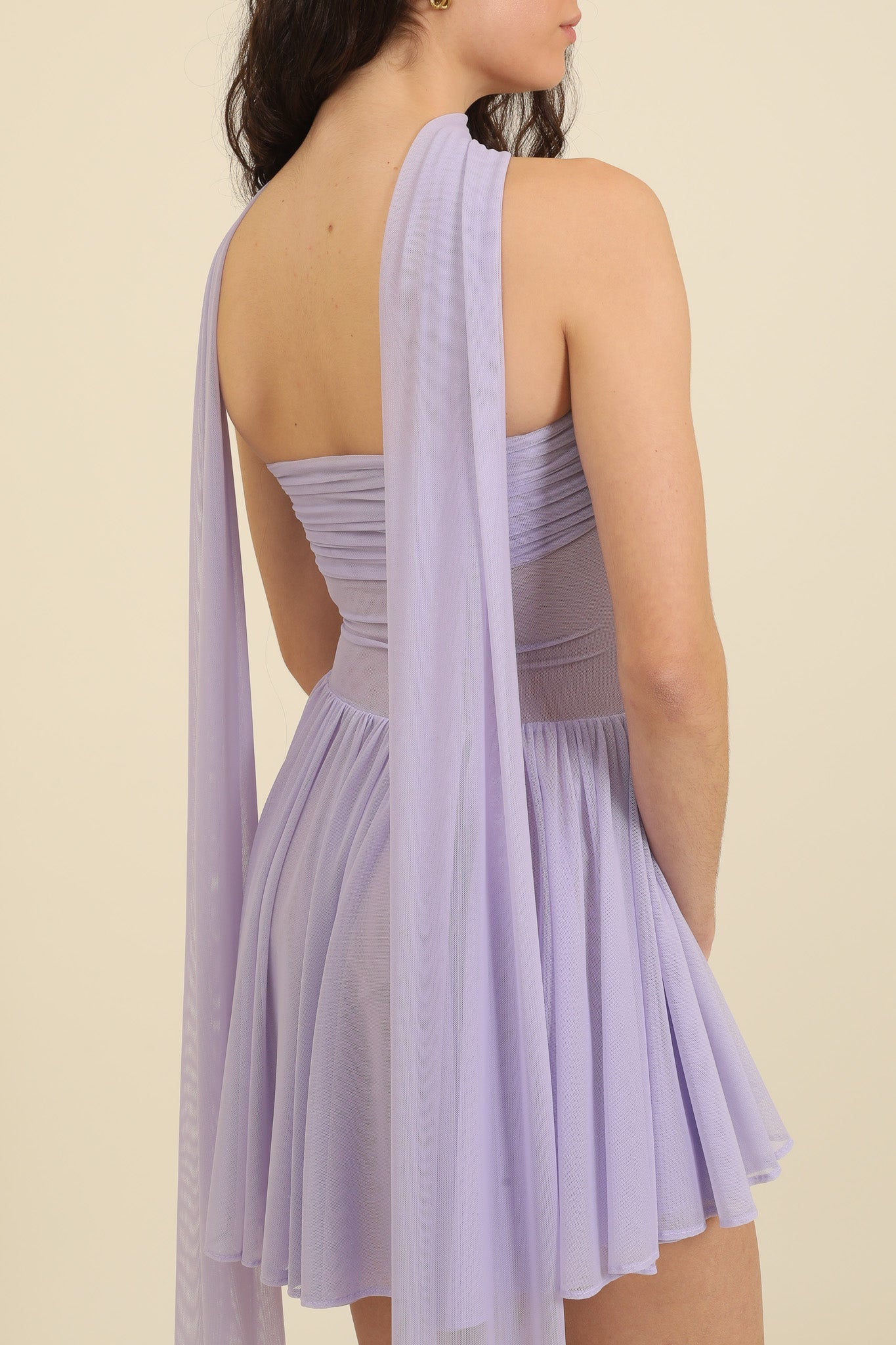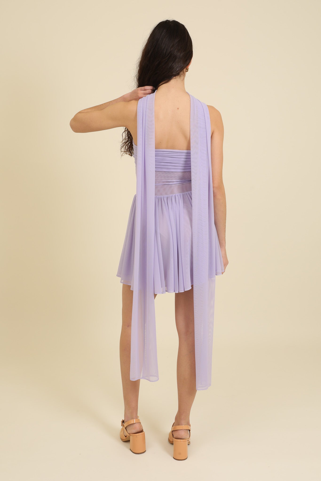 Frida is wearing a size X-small in Lilac, Regular skirt length.