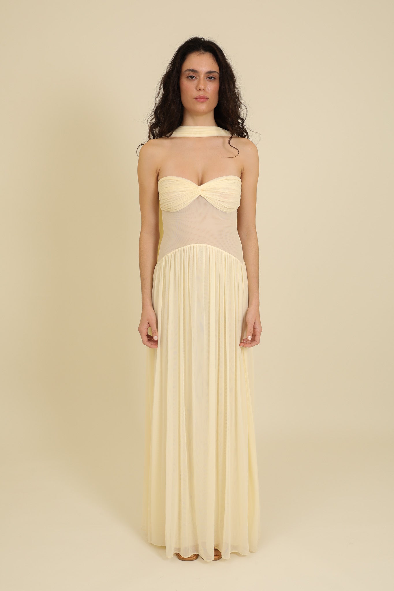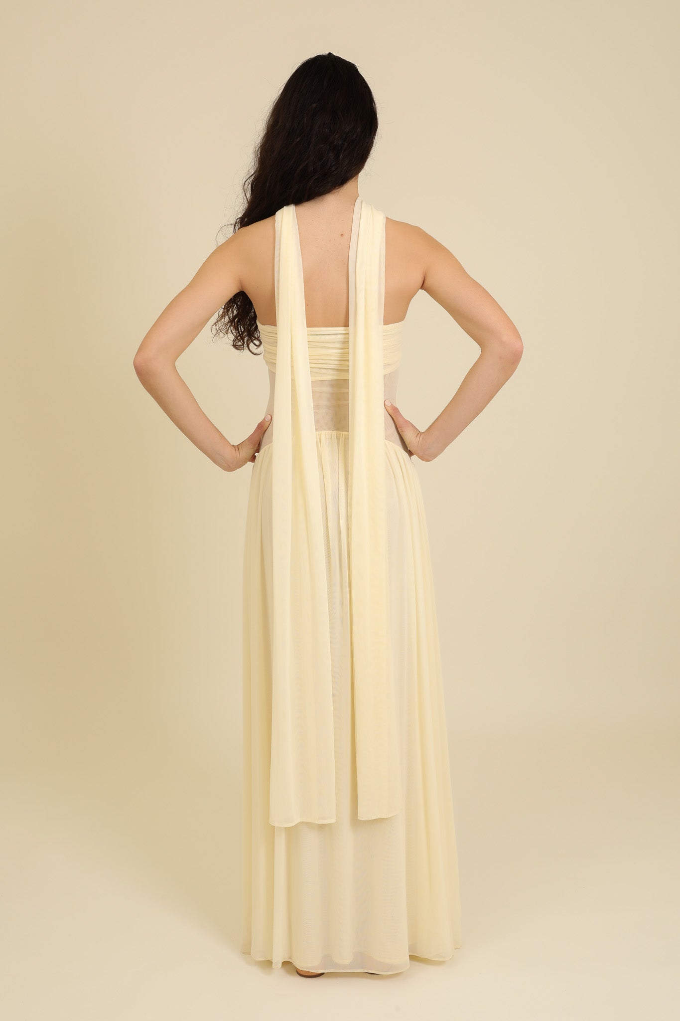 Height 173cm/5'8 + 7cm/2.75" heels (175cm-180cm Floor-length hem)