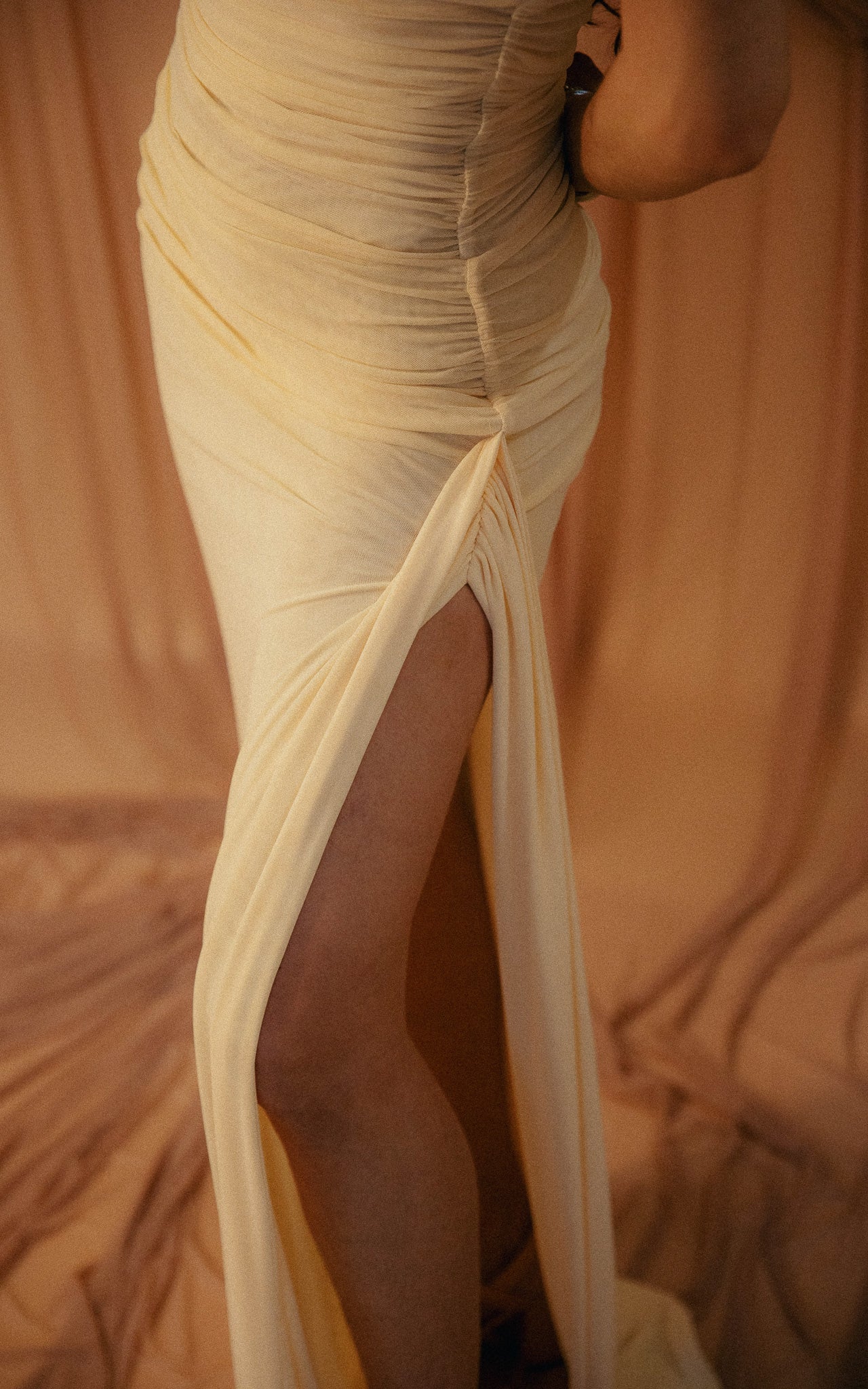 - Ruched skirt detail